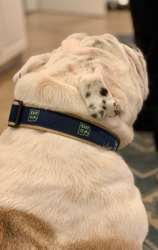 Exit 11 Dog Collar (Beige and new Blue canvas o...