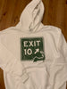 Classic white hoodie with our vintage finish Cape-style exit logo. This will take you from boat to beach to ballfield to bonfire, then bed, breakfast, repeat! Unisex sizing, model shown is wearing a large.