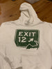 Classic white hoodie with our vintage finish Cape-style exit logo. This will take you from boat to beach to ballfield to bonfire, then bed, breakfast, repeat! Unisex sizing, model shown is wearing a large.