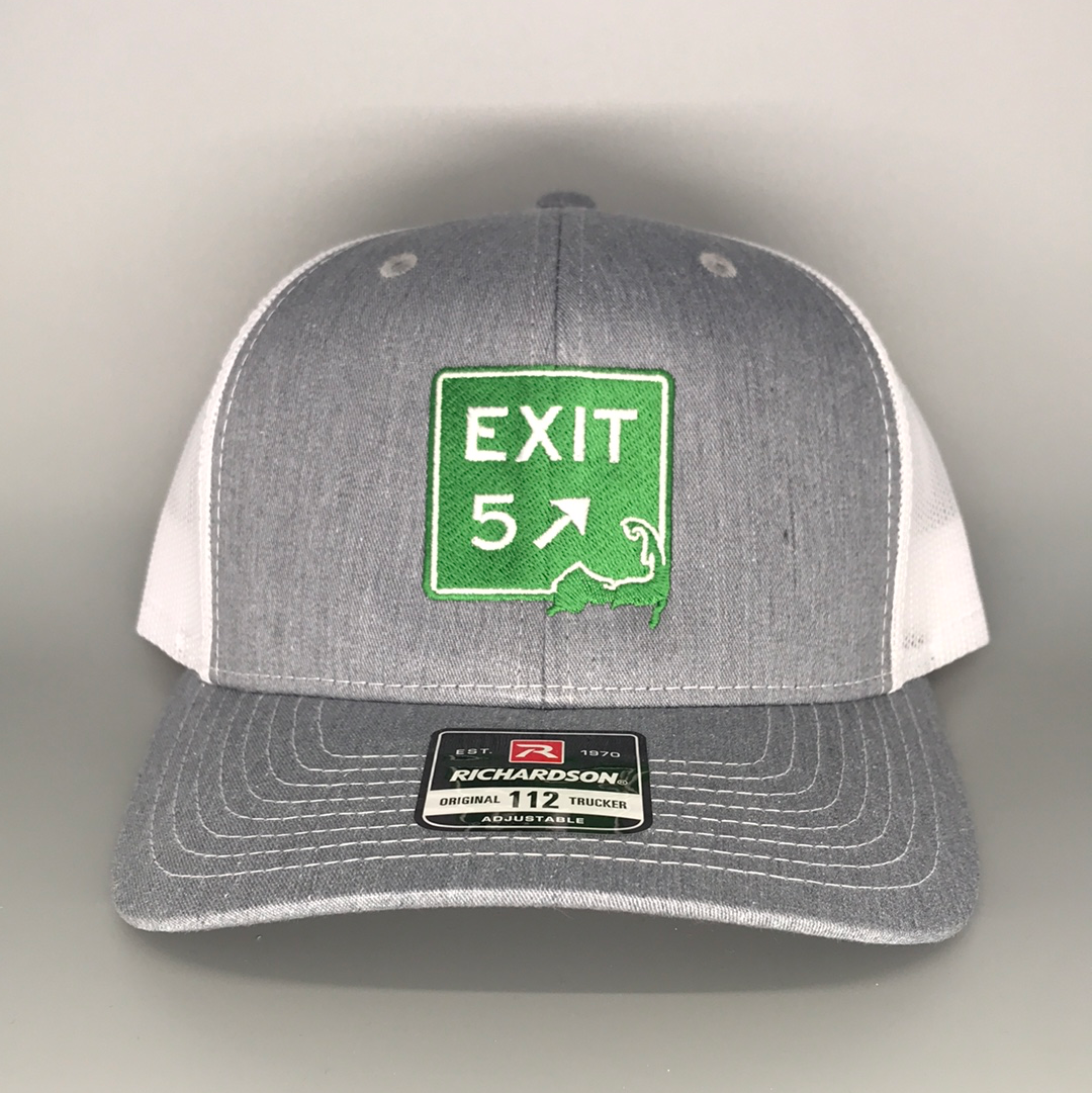EXITMERCH's Richardson 112 Exit 5 trucker hat with our custom Cape Exit logo. This classic trucker cap style is built with the Richardson quality and fit you’ve come to expect. EXITMERCH then combines it with the exit you love! A perfect match in our opinion. Choose from a variety of colors: Grey/White, Navy/White and Columbia Blue/Khaki. These three new Exit 5 hats all have the newer eggshell on green stitched logo. #REPYOUREXIT #WHEREDOYOUGETOFF #barnstable #centerville #marstonsmills #cotuit #osterville #westbarnstable #craigville