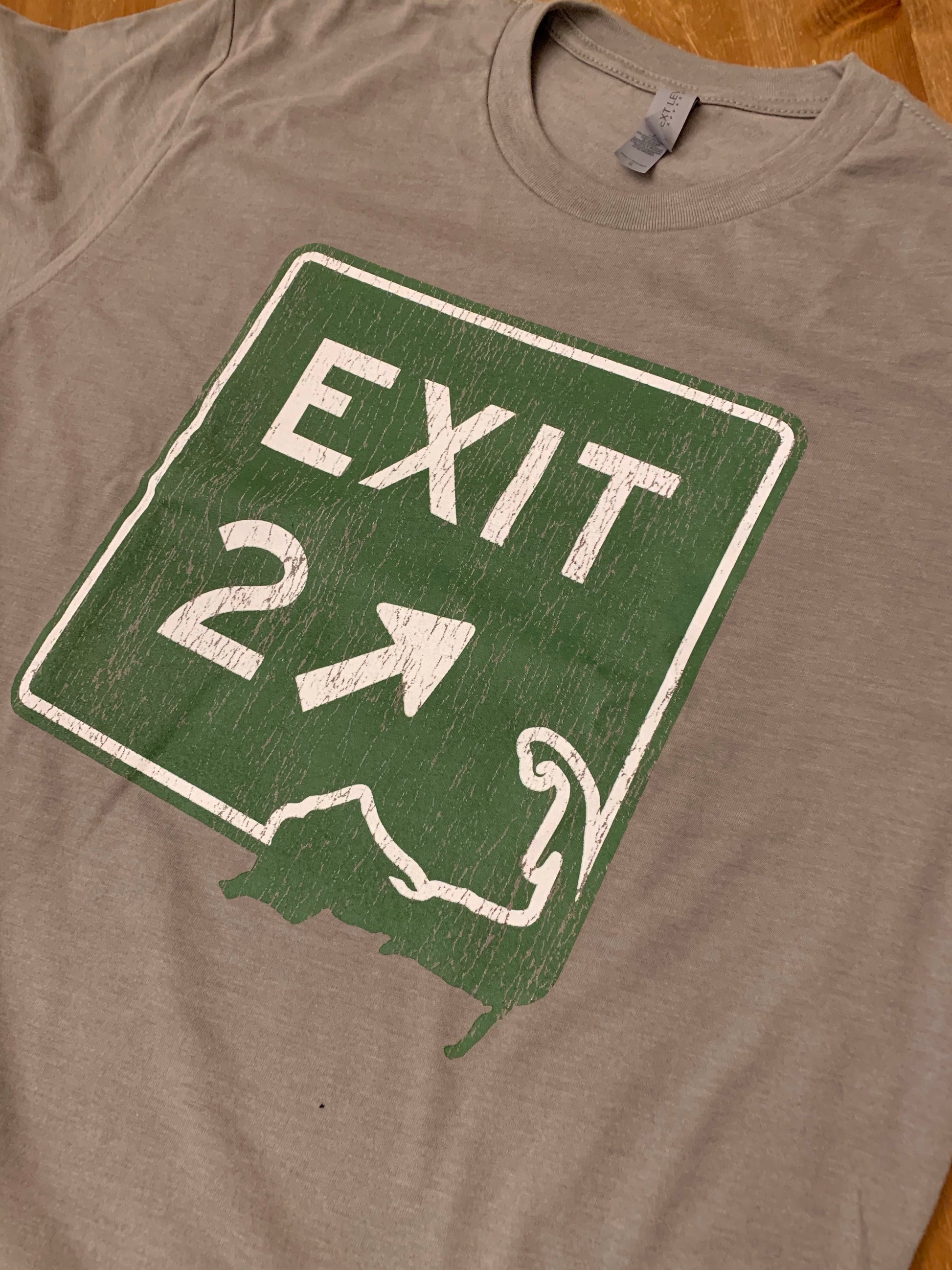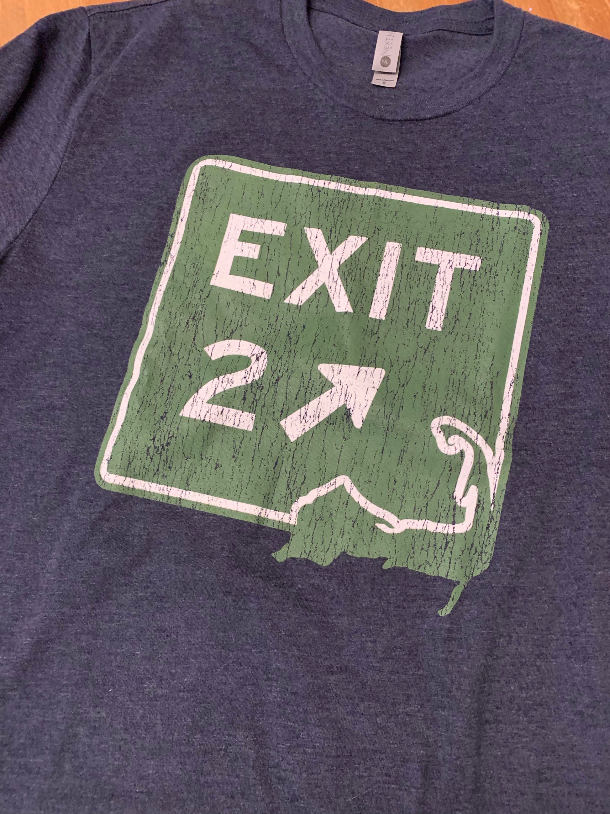 Our custom Cape exit logo with a vintage finish on the softest cotton tee. Available in Gray or Midnight Heather. Unisex S to XXL.