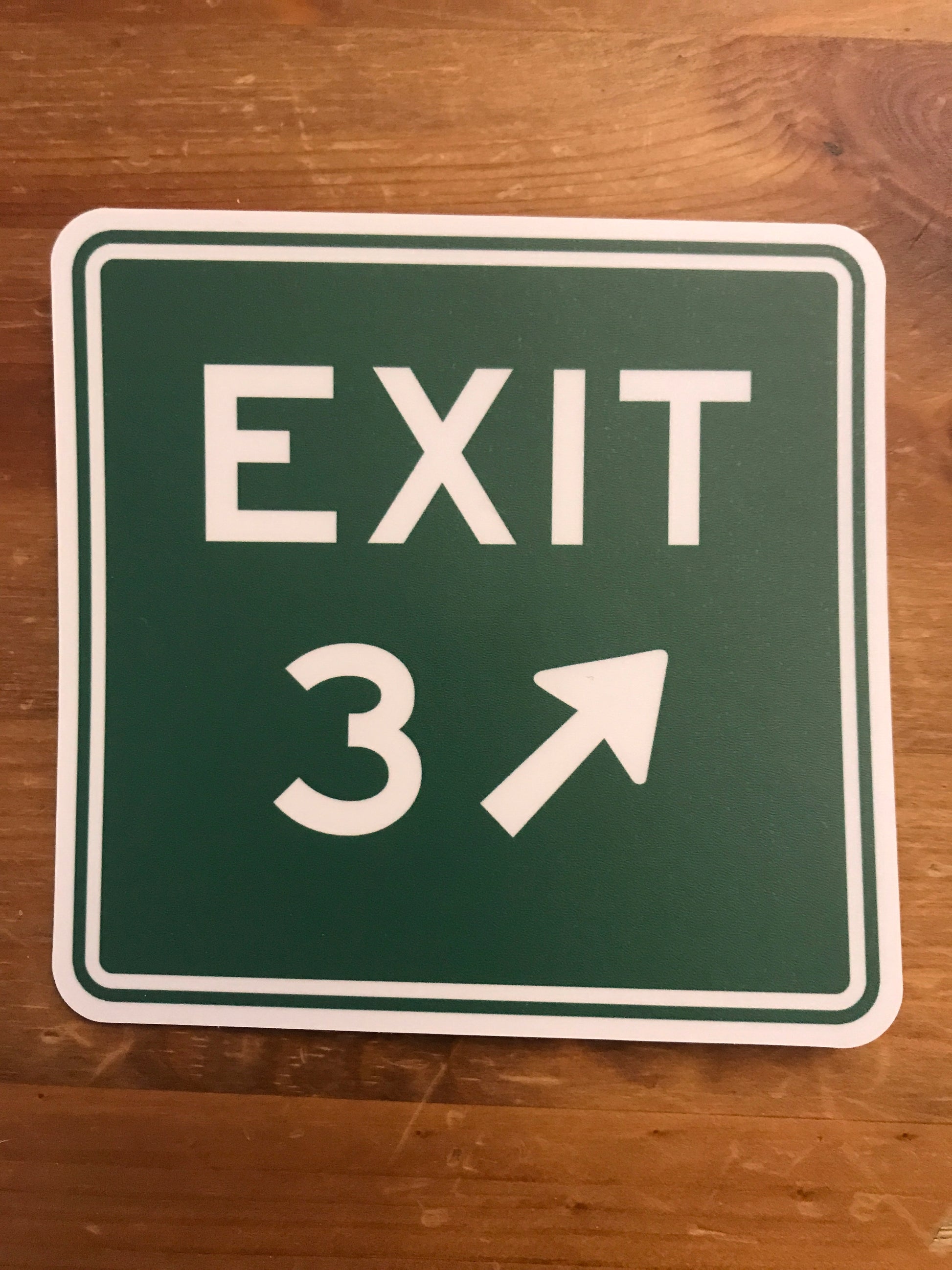 4" x 4" die-cut vinyl Exit 3 sticker. Great for your laptop, skateboard, bike, kids’ lunch boxes, mugs, notebooks, car and more! #REPYOUREXIT #WHEREDOYOUGETOFF