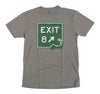 Our custom Cape exit logo with a vintage finish on the softest cotton tee. Available in Gray or Midnight Heather. Unisex S to XXL.