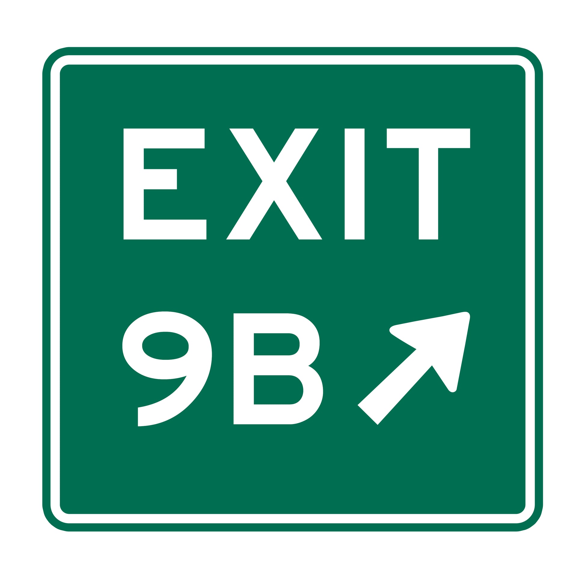 3.5" x 3.5" square die-cut vinyl Exit 9B sticker. Great for your laptop, skateboard, bike, kids’ lunch boxes, mugs, notebooks, car and more! #WHEREDOYOUGETOFF